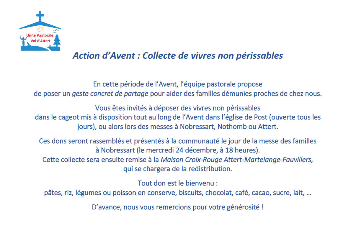 Depuis quelques années, notre journal paroissial n’avait plus de nom. Nous avons pensé qu’il était important d’en trouver un. Après plusieurs réfl exions, nous avons retenu une proposition faite dans le cadre de l’enquête relative au Chantier paroissial, pour trouver le nom de notre future Unité pastorale : « Le Sel de l’Attert », allusion à la parole de Jésus dans la Bible : « Vous êtes le sel de la terre » (Mt 5, 13). Quelques explications de ce nouveau nom s’imposent. « L’Attert » C’est évident ; cela renvoie à notre commune, mais cela peut aussi renvoyer à la rivière qui la traverse… Nous savons l’importance d’une rivière ou de l’eau dans la vie des hommes. C’est pourquoi, par analogie, cette rivière nous renvoie aussi à la Parole de Dieu : « Heureux est l’homme qui […] se plaît dans la loi du Seigneur et murmure sa loi jour et nuit ! Il est comme un arbre planté près d’un ruisseau, qui donne du fruit en son temps, et jamais son feuillage ne meurt ; tout ce qu’il entreprend réussira » (Psaume 1, 1-3). « Le Sel » Deux textes nous interpellent : « Ayez du sel en vous-mêmes, et vivez en paix entre vous » (Mc 9, 50) et « Que votre parole soit toujours pleine de grâce et assaisonnée de sel, afi n que vous sachiez comment il faut répondre à chacun » (Colossiens 4:6). Être sel, c’est donner autour de nous le goût de vivre, car, quand nous rendons la vie belle à ceux qui nous sont confi és, notre existence prend un sens. « Si, face à la multitude d’obstacles, nous nous demandons : “À quoi bon continuer à nous battre ?”, rappelons-nous que peu de sel suffi t à donner de la saveur. Par la prière, nous apprenons à nous regarder comme Dieu nous regarde : il voit nos dons, nos capacités. Ne pas nous aff adir, c’est nous engager corps et âme et faire confi ance aux dons de Dieu en nous. » Ce journal se veut donc un canal qui vient arroser notre vie spirituelle pour que nous puissions porter du fruit et aider chacun à être sel de la terre. C’est tout un programme ! C’est pourquoi nous avons besoin des talents de tous et toutes (telecharger le questionnaire ici).