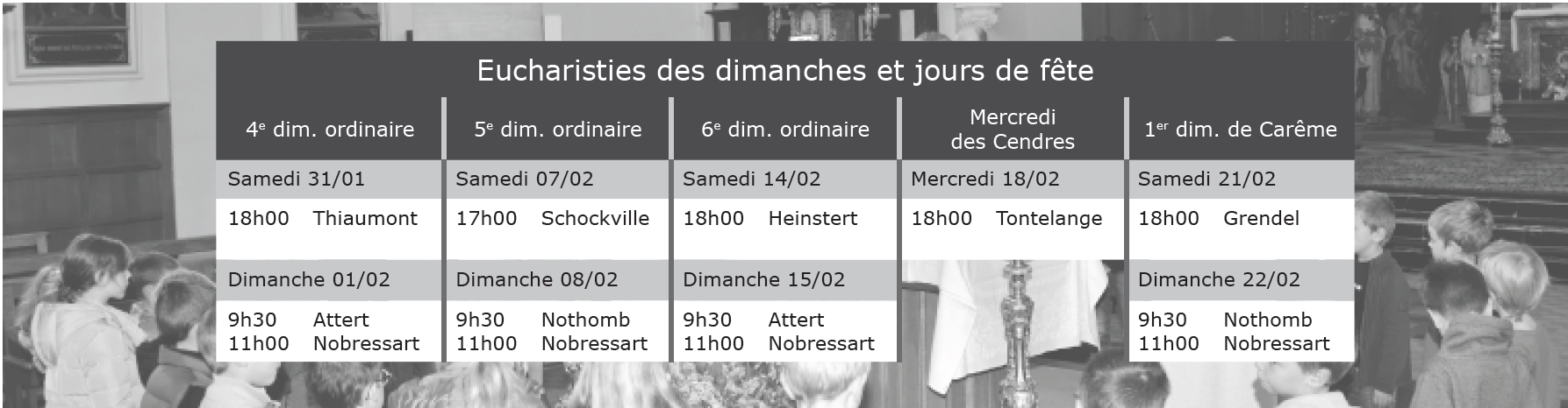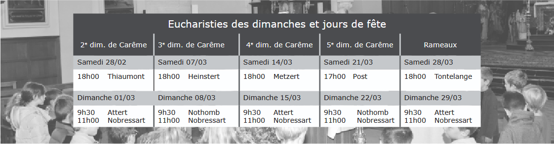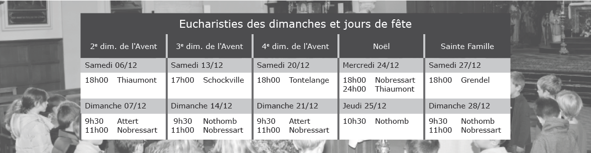 Retrouvez tous les horaires des célébrations sur www.egliseinfo.be